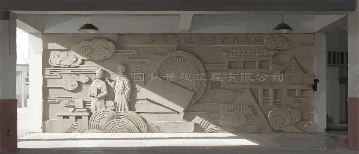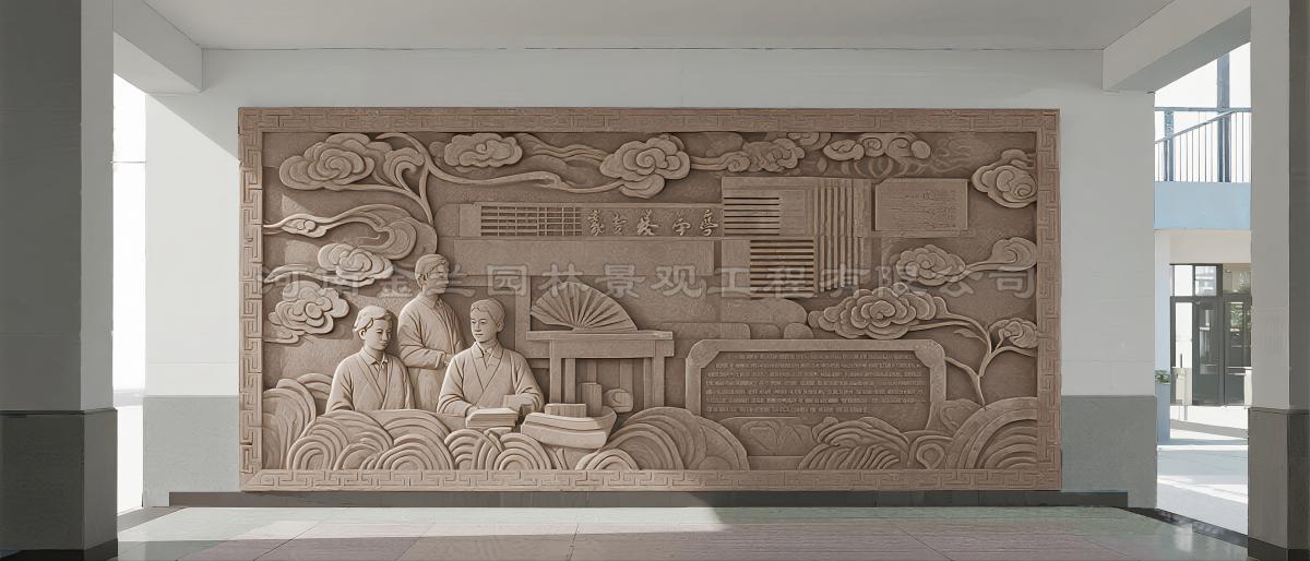 不同学段的教育目标,赋予了浮雕主题鲜明的差异化特征。小学阶段的回廊浮雕,往往以阳光活泼的视觉语言为主,通过明快的色彩与生动的童趣场景,传递成长力量与探索精神,契合儿童认知特点;中学阶段则更侧重传统文化的现代表达,将经典文化符号转化为具象艺术形态,在潜移默化中培育学生的文化认同。金兰园林景观基于对教育规律的深刻理解,能够精准把握不同学段的文化需求,实现艺术表达与教育目标的有机统一。