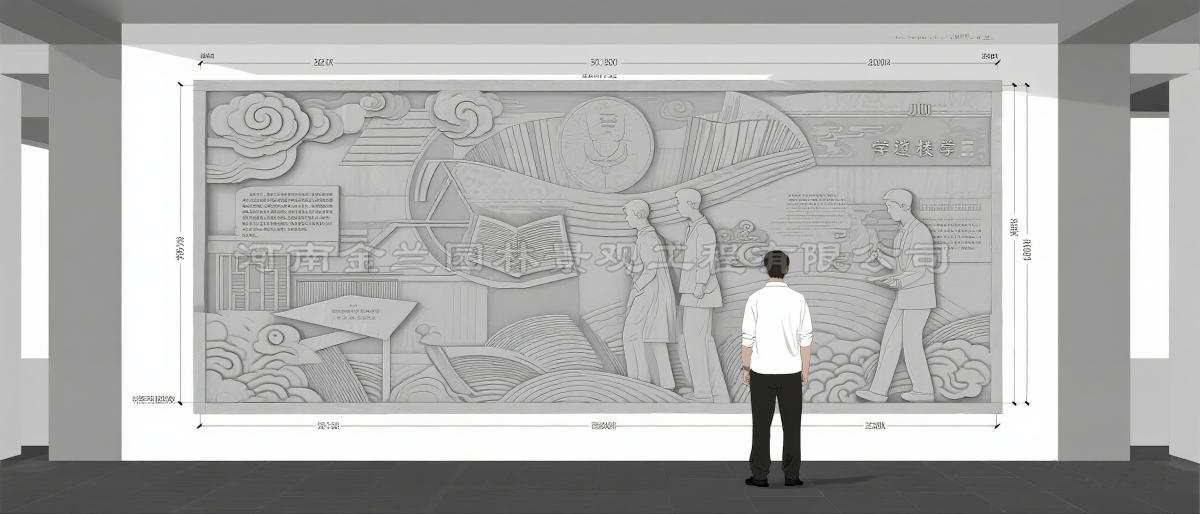值得注意的是,校园浮雕作为定制化艺术作品,承载着独特的文化创意价值。金兰园林景观提示,所有公开的浮雕设计效果图均受版权保护,未经授权不得擅自使用,以维护知识产权秩序。
