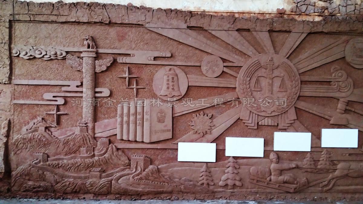 作为群众接触法院的重要空间,这幅浮雕文化墙不仅是艺术作品,更是法治教育的立体教材。正面的民族元素拉近了司法与群众的距离,背面的廉政主题则时刻提醒干警坚守初心。正如最高人民法院在文化建设中强调的 “让法治精神可见可感”,金兰园林景观通过具象化的艺术语言,将抽象的司法理念转化为可触摸的文化符号,为呼伦贝尔法院构建了兼具地域特色与时代精神的文化标识。