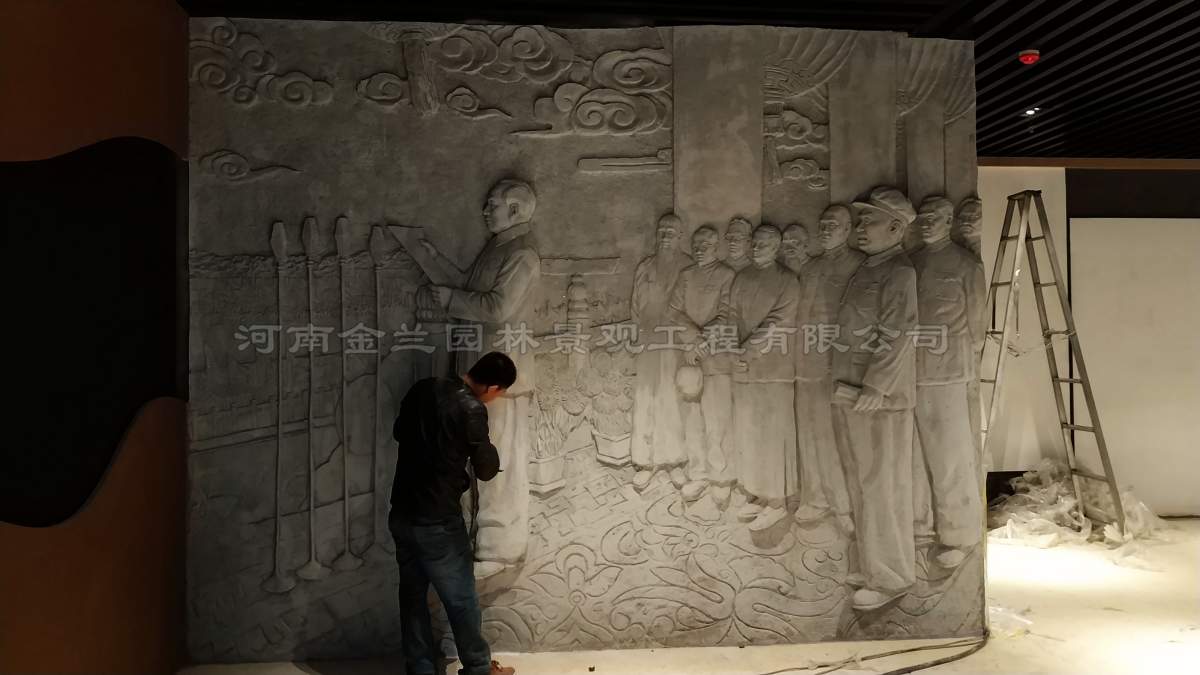 作为长子县党建展厅的重点建设项目,该浮雕的落地离不开金兰园林景观与总承包单位的紧密协作。从设计方案的政治严谨性审查到施工过程中的安全把控,双方建立了高效的沟通机制,左总带领团队多次深入现场,协调展厅空间布局与浮雕安装细节,确保艺术效果与功能需求的完美统一。这种基于专业信任的合作模式,不仅保障了项目按期高质量完成,更成为新时代政企携手传承红色文化的典范。