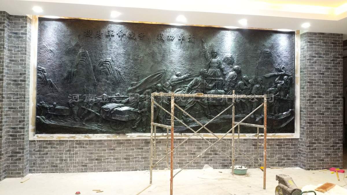 项目团队秉持"以艺铸魂"的创作理念,特邀省级工艺美术大师领衔设计。采用传统泥塑与新型材料结合的创新工艺:先由雕塑家手工塑造1:1泥稿,经三维扫描技术辅助定型后,采用玻璃钢材质进行精密翻模。为达到仿铜效果的视觉质感,工艺师运用专利着色技术进行七层渐变涂装,既确保艺术表现力,又满足场馆防火规范要求。整个制作过程历经30天攻坚,攻克大型浮雕模块化安装、曲面精度控制等技术难点,实现艺术性与功能性的完美统一。