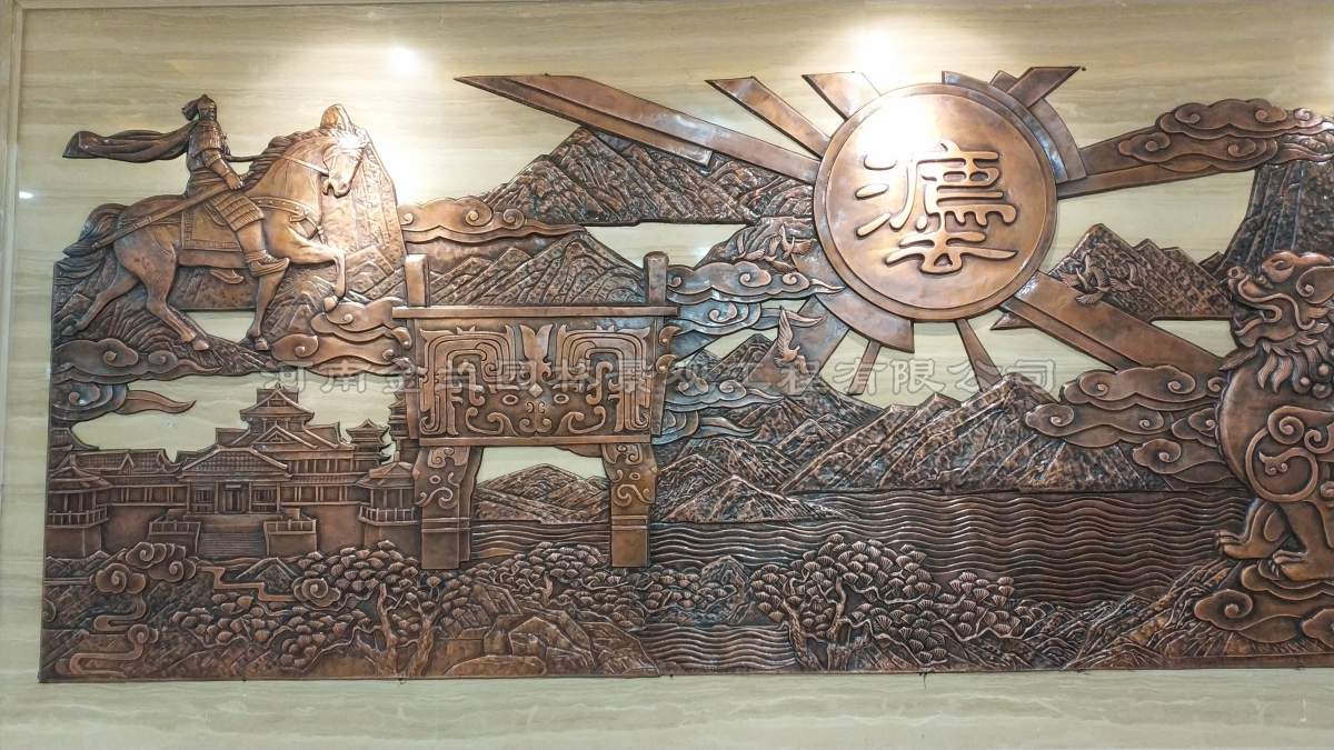 在宿迁市宿豫区人民法院法庭大厅,一面长5.5米、高2米的紫铜浮雕文化墙正式落成。作为司法文化建设的标志性载体,该作品由金兰园林景观工程有限公司采用传统手工锻造工艺,历时25天精心打造,以"法润宿豫"为主题,将法治精神、历史文脉与艺术审美深度融合,成为新时代法院文化建设的创新实践。