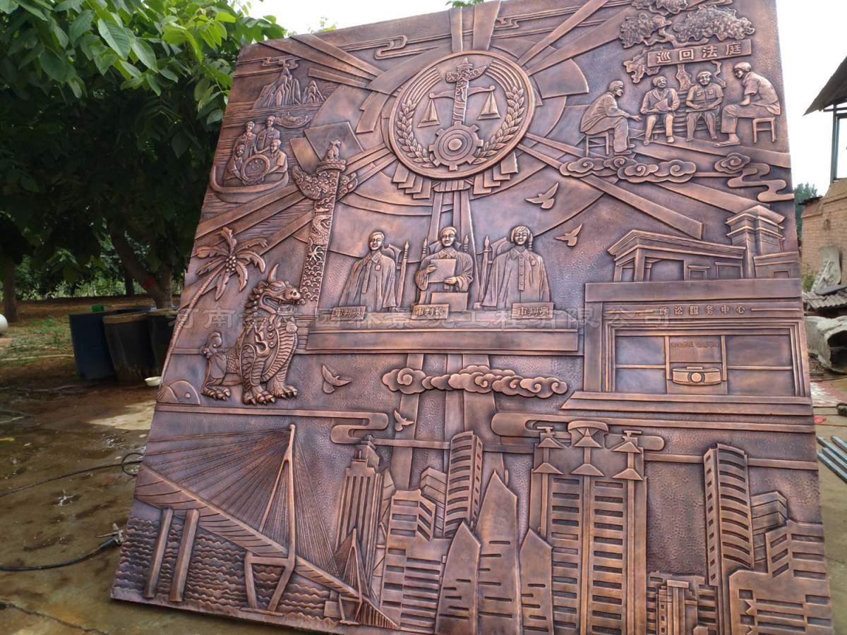 在法治文化传承与司法精神弘扬的实践中,艺术与历史的交融往往能迸发出震撼人心的力量。由金兰园林景观公司制作的湛江市中级人民法院院史馆入口浮雕文化墙项目,这座以紫铜锻造、手工精铸的司法主题浮雕,凭借其深刻的文化内涵、精湛的工艺水准与独特的艺术表达,成为湛江法治文化建设的新地标,更被院方誉为"司法精神凝练的立体画卷"。