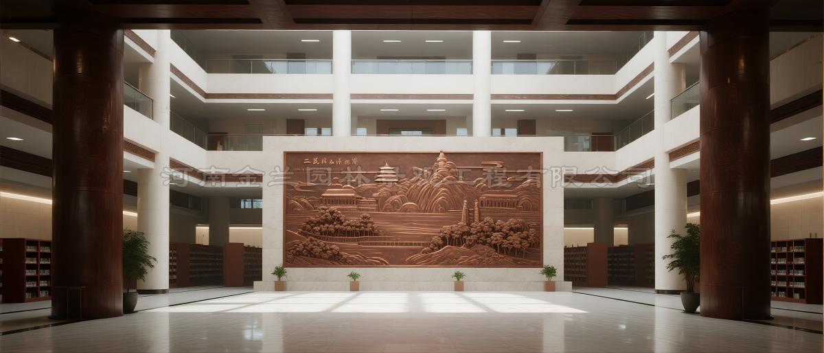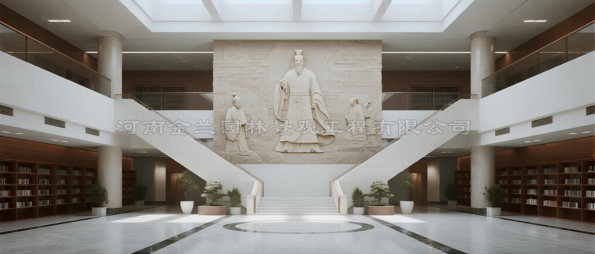 这10幅效果图绝非千篇一律的模板,而是金兰园林景观深研图书馆“文化场域”特质后的匠心之作。图书馆作为学校精神高地,其浮雕艺术天然承载着多重使命: