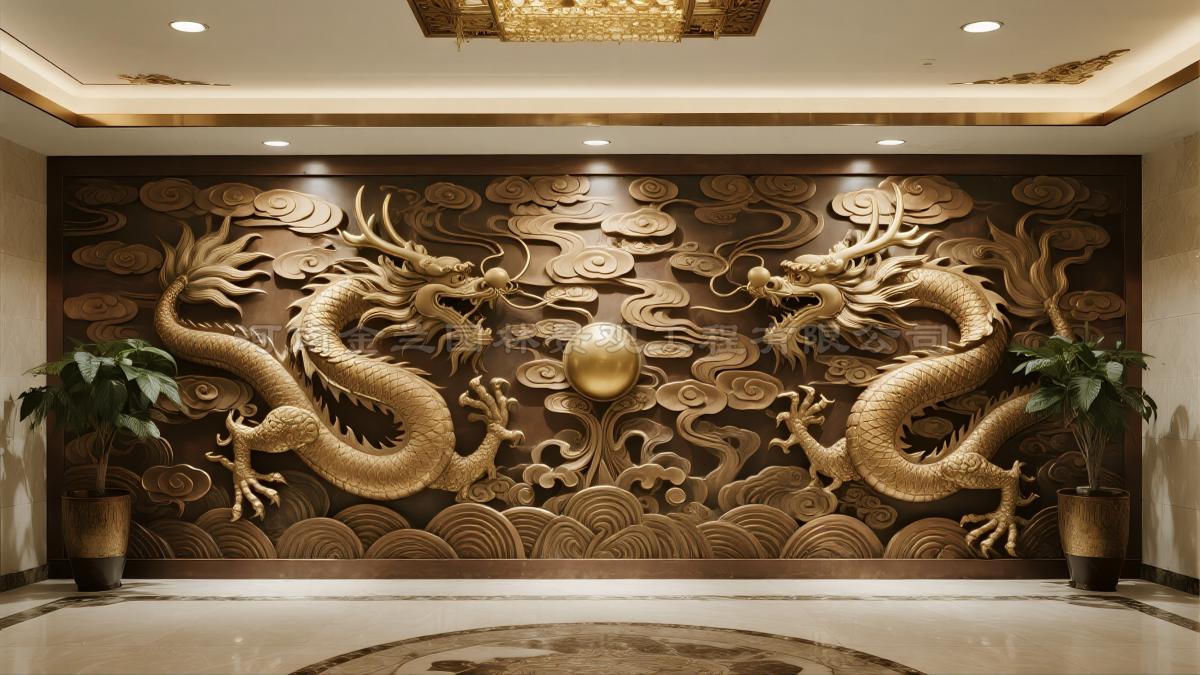 金楼作为承载黄金文化与财富象征的场所,其装饰浮雕需兼顾艺术性与寓意性。龙、凤、祥云等中国传统纹饰因具有吉祥富贵的象征意义,成为金楼浮雕的主流题材。这类纹样不仅视觉效果华丽庄重,更能与黄金产品形成文化呼应,强化空间叙事。此外,如宝相花、缠枝纹、如意纹等富丽纹饰,也常见于高端金楼装饰中,进一步提升环境的文化厚度与品牌格调。