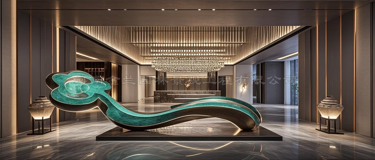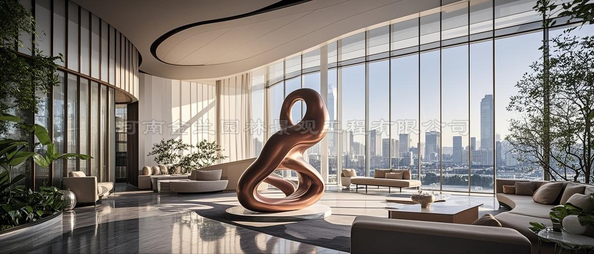 作为空间的“视觉锚点”,抽象铜雕塑天然占据C位。在城市广场,它是区域精神的具象化;在酒店大堂,它界定空间格调;在园林节点,它引导游览动线。金兰园林的作品便深谙此道,通过尺度规划与风格适配,让雕塑既成为视觉焦点,又与环境和谐共生,实现“点睛而不夺目”的空间效果。