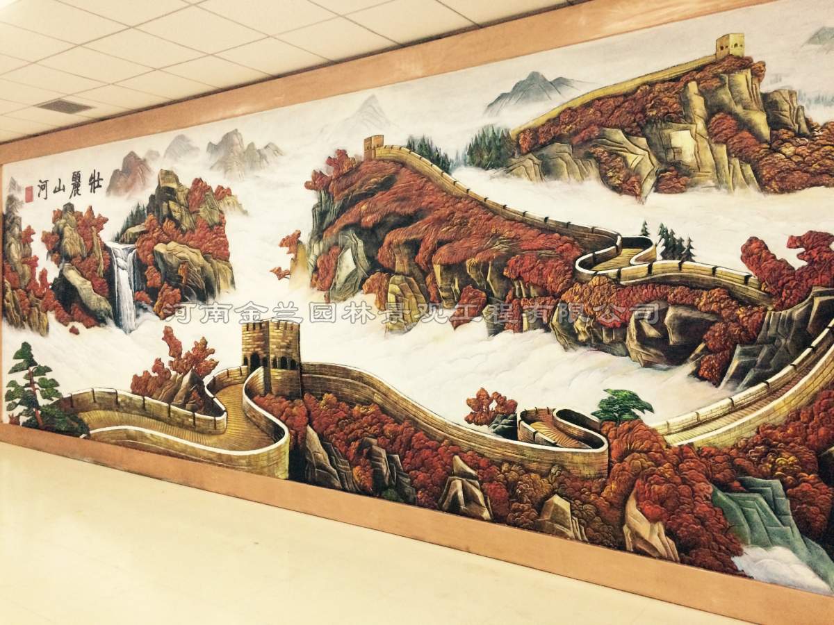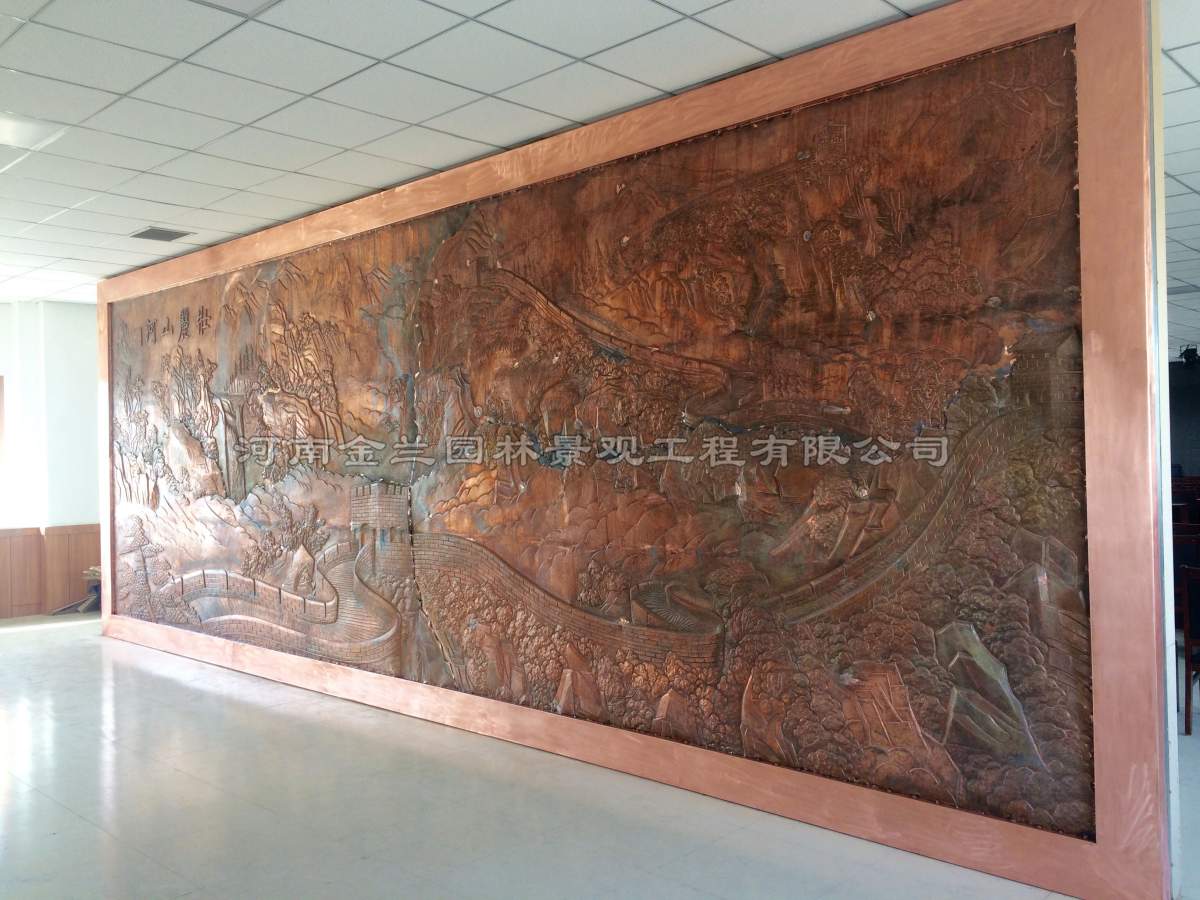 在新时代法治文化建设的浪潮中,酒泉市新监狱会议大厅近日迎来一件震撼人心的艺术巨制——由金兰园林景观公司倾力打造的《壮丽山河》紫铜浮雕壁画正式落成。这幅长9米、高3.5米的艺术工程,以紫铜锻造工艺再现万里长城的雄浑气象与祖国山河的壮美画卷,成为展现法治文化内涵与艺术审美价值的标志性作品。