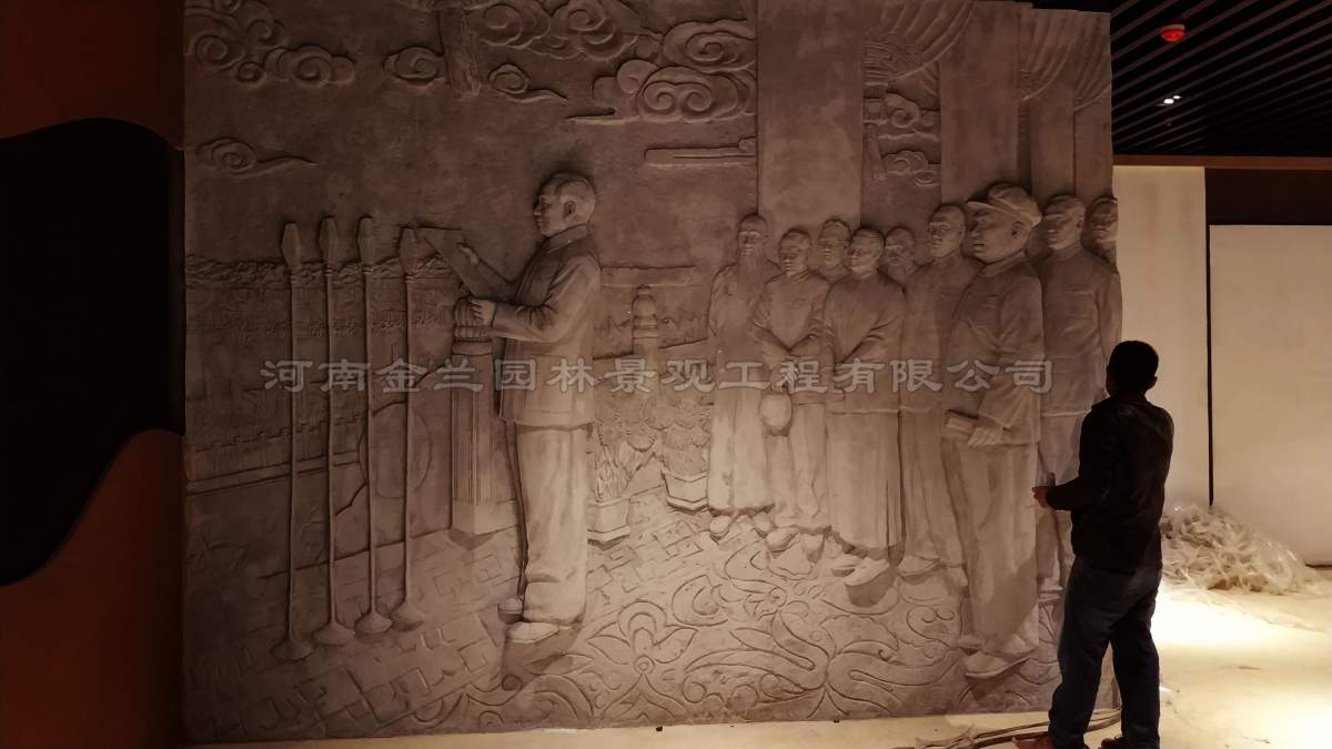 作为长子县党建展厅的重点建设项目,该浮雕的落地离不开金兰园林景观与总承包单位的紧密协作。从设计方案的政治严谨性审查到施工过程中的安全把控,双方建立了高效的沟通机制,左总带领团队多次深入现场,协调展厅空间布局与浮雕安装细节,确保艺术效果与功能需求的完美统一。这种基于专业信任的合作模式,不仅保障了项目按期高质量完成,更成为新时代政企携手传承红色文化的典范。